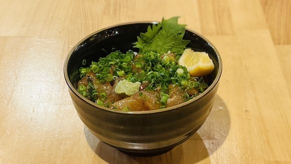 大分の郷土料理、「りゅうきゅう」を白飯に乗せ、甘辛いしょうゆベースのタレがご飯に絡む一杯です!