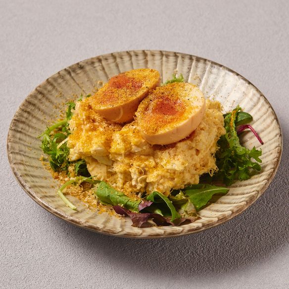 燻製ポテトサラダにカラスミパウダーとミモレットチーズをふんだんに削りました。