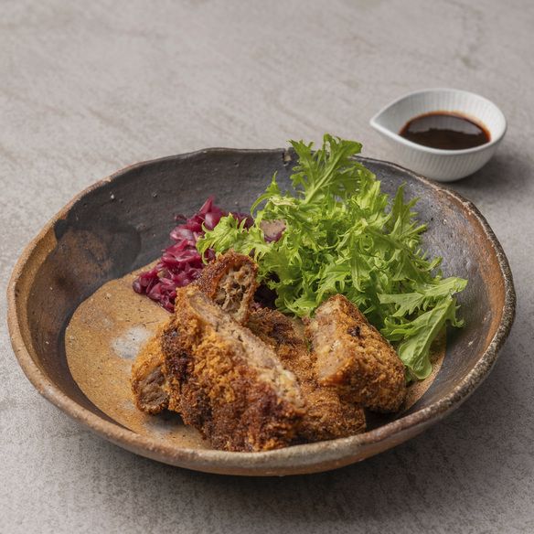 アニス風味の自家製のウスターソース、発酵キャベツと一緒にお召し上がりください。