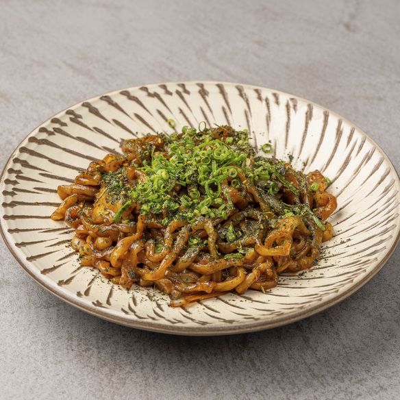 海老のソースをベースに、ウスターソースやスパイス、ハーブをブレンドした濃厚なソースの焼きそば 特定原材料:海老、小麦、卵