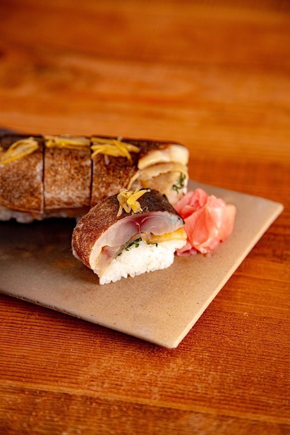 京都で定番の鯖の棒鮨をuké風にアレンジ。酢締めの鯖の旨みを丁寧に引き出しました。 大葉、柑橘の爽やかな香りと共にお楽しみください。