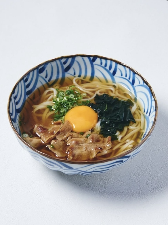 当店自慢のおでん出汁を使い、鰹節と昆布の香り豊かな月見うどんです。