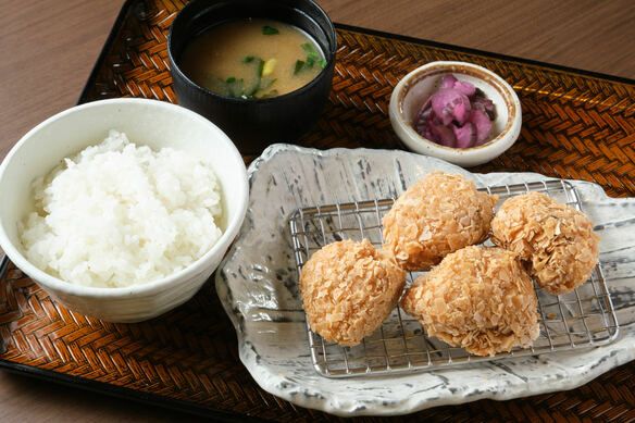 プレーン、 デリヤキ、ミソ、マヨキムの4種盛定食です。 ⚠️マヨネーズには、小麦が含まれています。