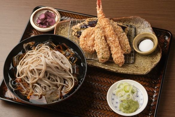 アジ、ナス、オクラ、カボチャ、レンコンの定食です。