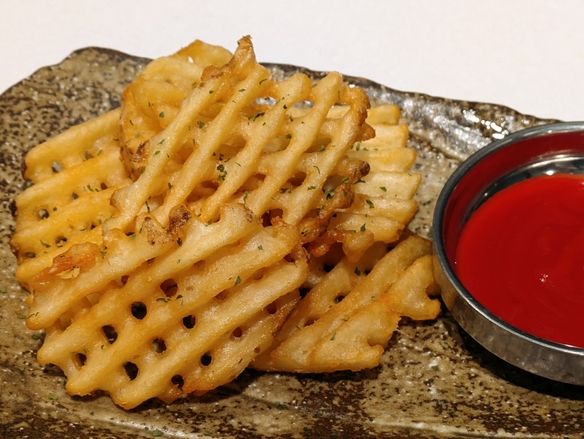アミアミの格子状にカットしたフライドポテト! カリカリもちもちの食感です