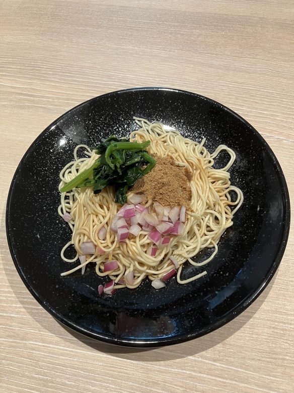よく混ぜてお召し上がりください。 お好みですが海苔を押さえて混ぜていただき、海苔で麺を包んで召し上がっていただくのもお勧めです。