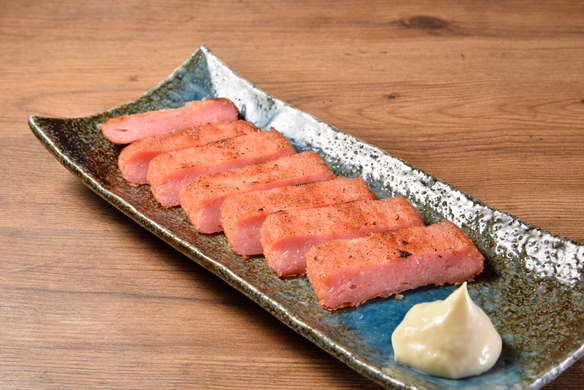 島根の名物!唐辛子を練り込んだピリリと辛い赤天をシンプルに焼き上げました!
