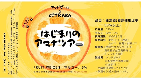 シトラバのオリジナルビールをアンドビールさんで作りました!! 甘夏をたっぷり使った、ジューシーさ溢れるヴァイツェン! 夏にピッタリのフルーツ白ビールです!