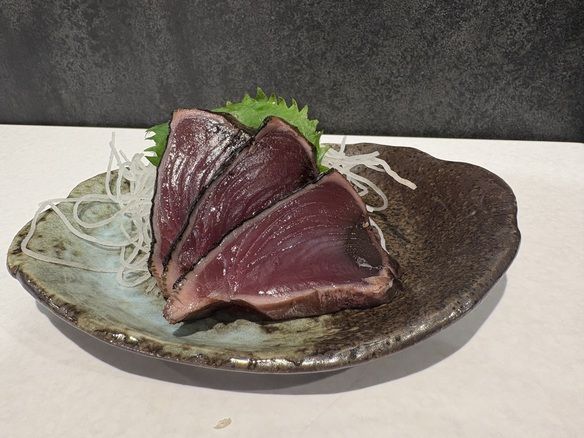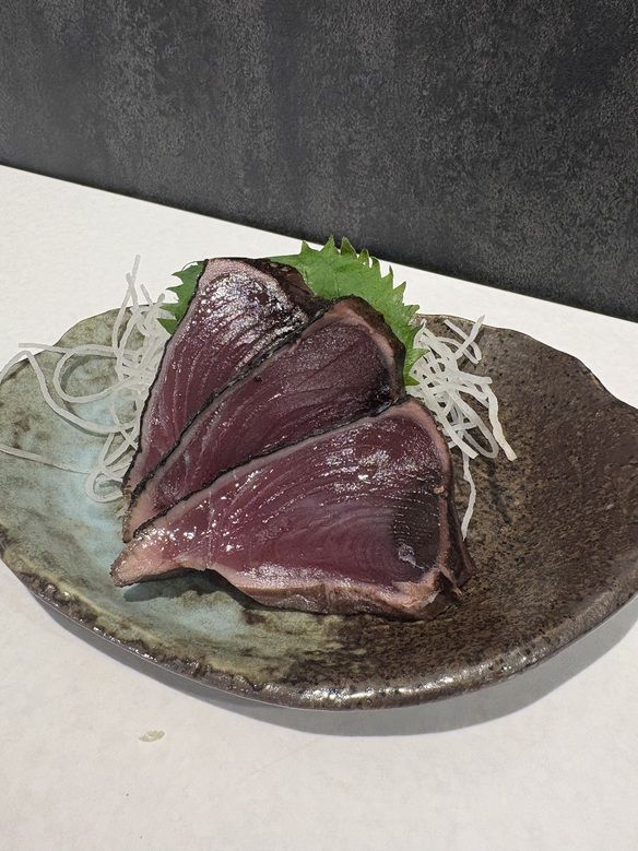 藁焼きした鰹に大葉とトマトで爽やかな一品に。自家製のバジルソースで香り豊かに仕上げました