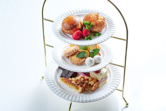スコーン、焼き菓子、ケーキ等、全部で10種ほど一度に楽しめます。 そば粉を使ったブリニのサンドイッチがセットになります。