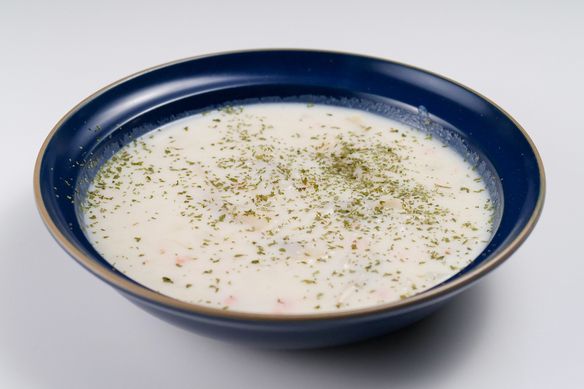 スモークチーズに変更のマイナーチェンジ。やみつきスパイスの、ホワイトクリームのスープ。