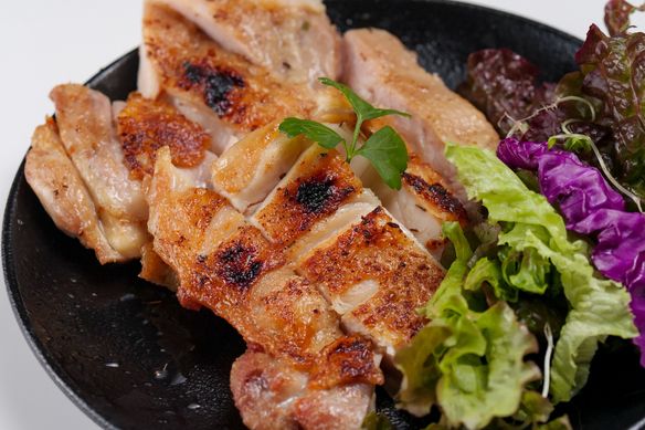 丁寧に塩抜きをしたチキンの濃い旨味と塩のバランス。6種のハーブとスパイスで風味を整えている人気メニューです。提供まで20分前後かかることがあります