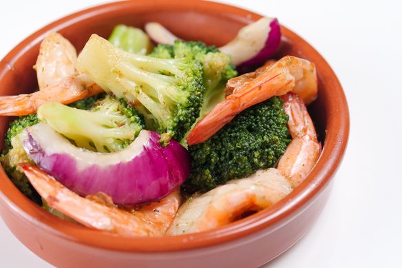アヒージョ風。下味をつけて香ばしく焼いたエビは殻付きのハワイ風で、苦手な方は殻をむく手間をおかけいたします。オーブン焼きにてお時間少々いただきます