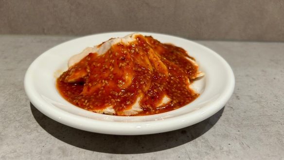低温調理をしてしっとりと仕上げた鶏むね肉にピリ辛な胡麻だれがビールのおともにはかかせません‼︎