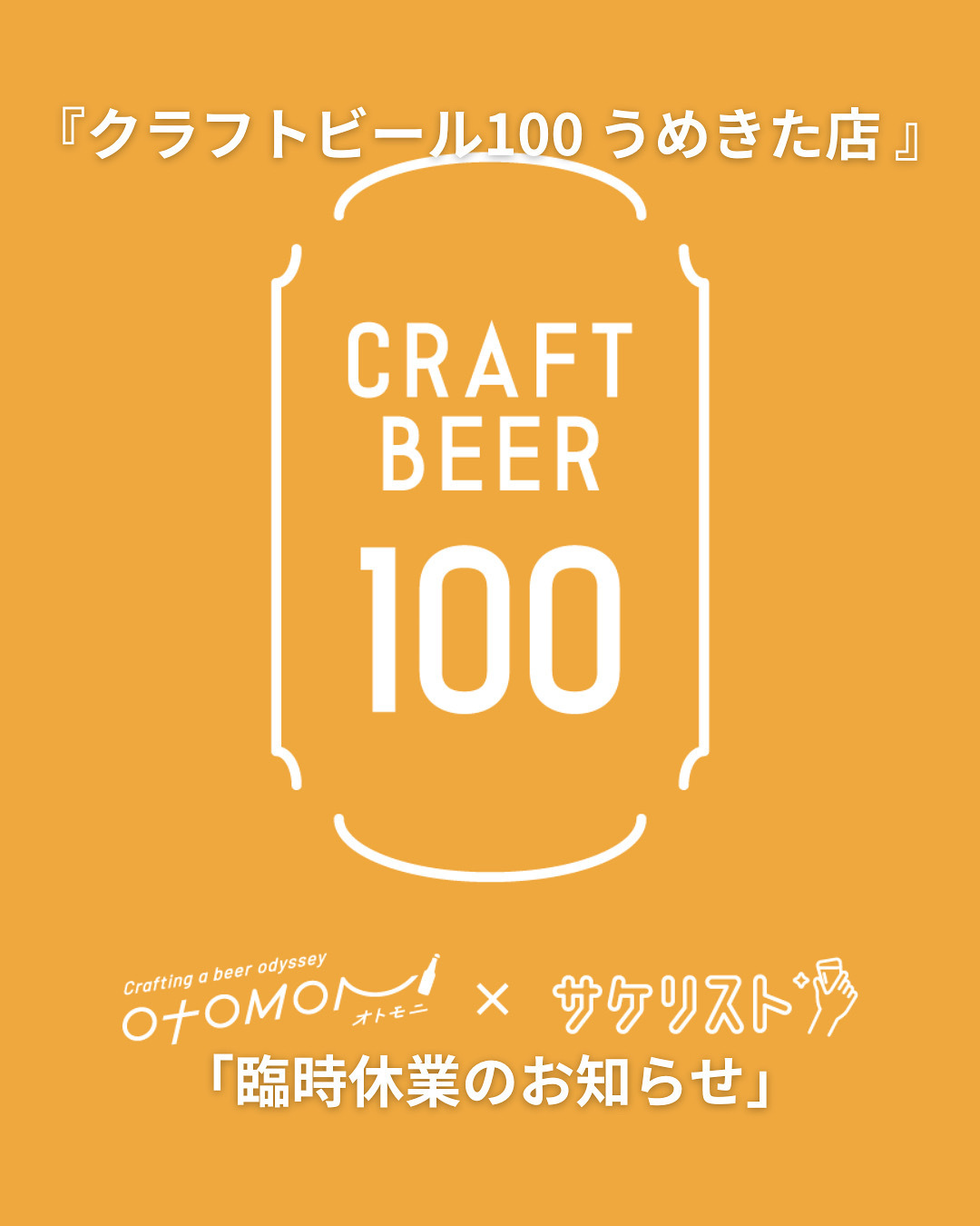 サケリスト うめきた 並びにクラフトビール100が下記日程は臨時休業または営業時間の短縮を致します。