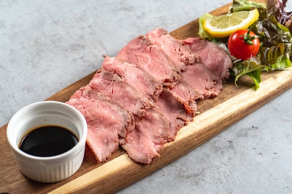 11日間じっくりと氷温熟成し旨みを引き出しローストすることでしっとりとた食感に仕上げました。 ボリューム満点! 炎やオリジナルソースorサッパリわさび醤油からお選びください。
