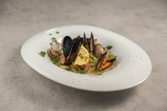 アサリとムール貝を白ワインのソースで仕上げた、少し大人な一皿。