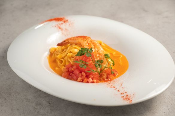 本店で1番人気の濃厚なトマトクリームパスタ。隠し味にうにソースを使用。