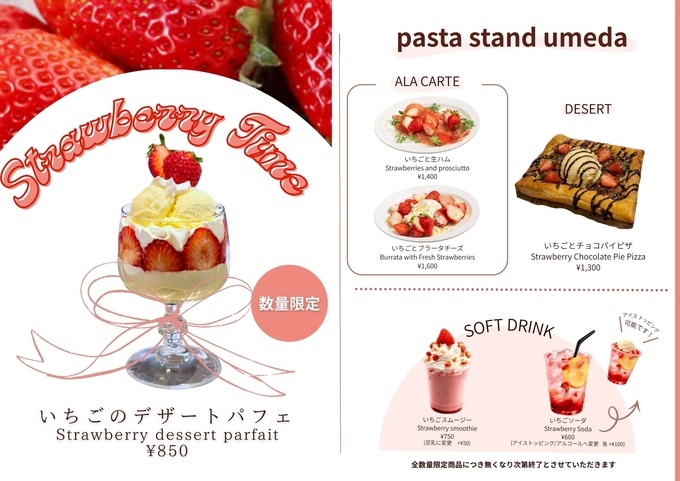 梅田駅から徒歩8分。「グラングリーン大阪 北館 JAM BASE」1階『re:Dine 大阪』内にあるイタリアン『pasta stand』では、「美味しい苺でみんなを幸せにしたい」という想いから...