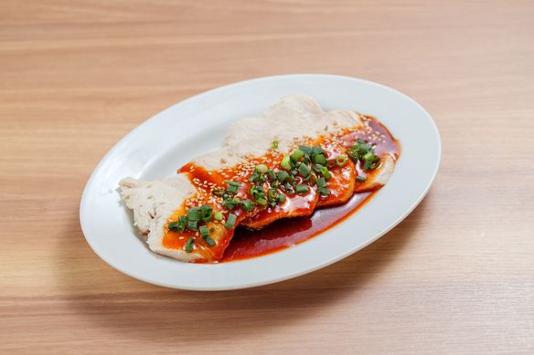 国産の胸肉をしっとり調理して作っています。ソースも自家製で酸味とキリッとした辛味を楽しめます。ヘルシーかつ高タンパクなお酒が進む一品です