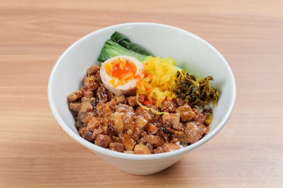八角などのスパイスで煮込んだルーローハンは大人気台湾ご飯です!ごろっとした豚肉と味玉もトッピングしたボリューム満点の料理です