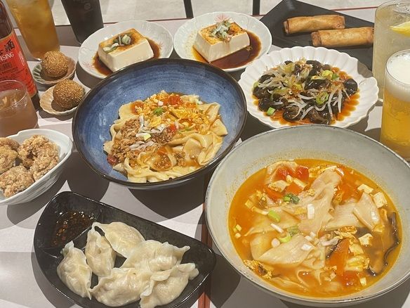 ドリンク飲み放題(メニューにあるドリンク全てOk) ビャンビャン麺、水餃子、五目春巻き、麻辣冷奴、木耳の前菜、コチュジャンの旨辛唐揚げ、胡麻団子
