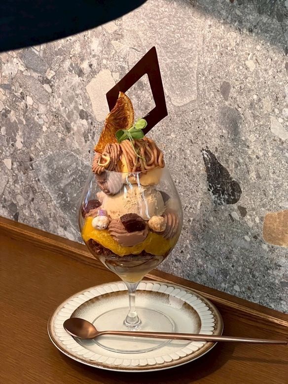 栗のやさしい甘さと濃厚なショコラに、爽やかなオレンジを合わせた秋のパフェです。 香ばしいマロンのクリームにビターショコラを重ね、柑橘の明るい酸味が後味を軽やかに。香りのア クセントにはレモンバーベナのジュレを加えました。 深まる季節を感じさせる少し大人の味わいを、ぜひお楽しみください。 ※混雑時ご提供に30分以上お時間いただく場合がございます。ご了承下さいませ。