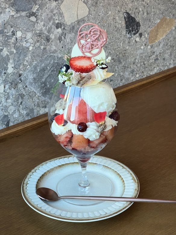 上から順に、 ショコラパーツ 苺 ブルーベリー 苺のディプロマットクリーム ゆずのマスカルポーネシャンティ 塩ミルクアイス あまおうソルベ 黒糖のクッキー キルシュクランベリー ※ ゆずのマスカルポーネシャンティ 苺のパンナコッタ ピンクグレープフルーツのローズマリーマリネ 苺とバルサミコのマリネ スポンジケーキ ルビーショコラのクロッカン カシスと苺のジャム 苺とバルサミコのマリネ クランベリーとザクロのジュレ ※混雑時ご提供に30分以上お時間いただく場合がございます。ご了承下さいませ。