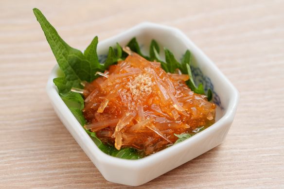 沖縄産の太もずくを使用しまろやかな甘酢で仕上げた夏場の定番おつまみ。