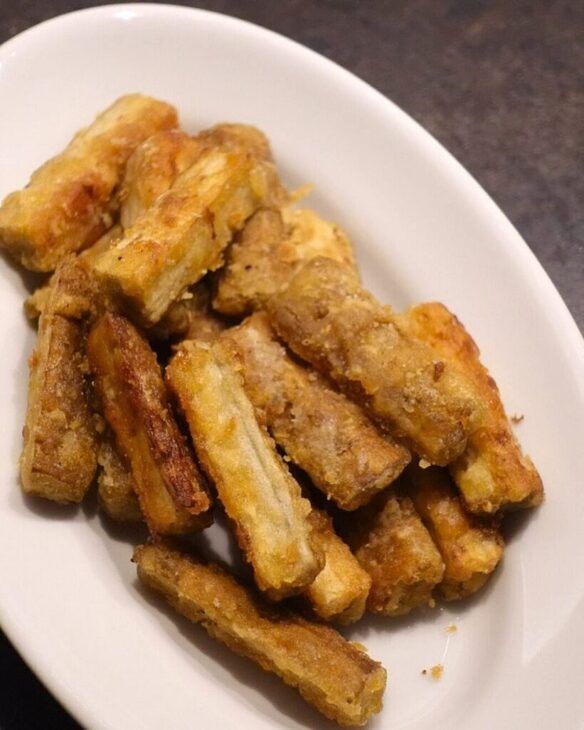 外はカリカリ、中はジューシー 台湾家庭料理の唐揚げで、特製のたれにじっくり漬け込んでいる。五香粉(ウーシャンフェン)というミックススパイスを使うことで、独特のスパイシーな香りが加わります。衣にキャッサバ粉(タピオカの原料)を使用することが多く、ザクザクとしたクリスピーな食感が特徴です。限界突破でスーパーになれるかも⁉️