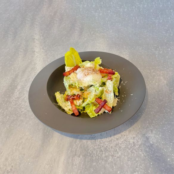 ロメインレタスに濃厚なアンチョビドレッシングをまとわせ、パルメザン、クルトンで