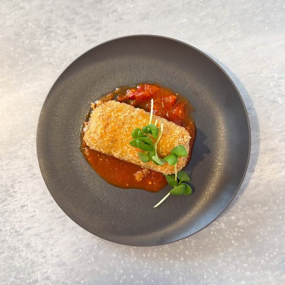 完熟トマトを豚肉、モッツァレラ、大葉で包み揚げたフルーティーで軽やかなフリット
