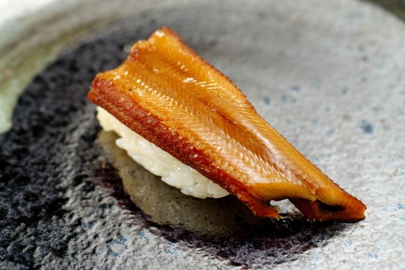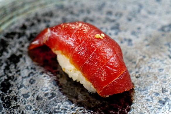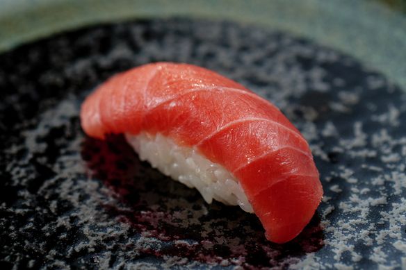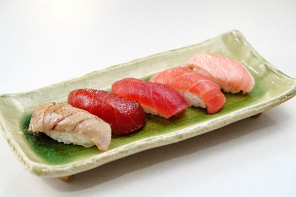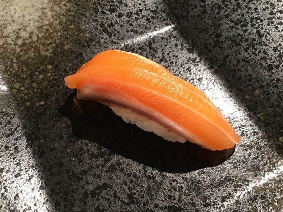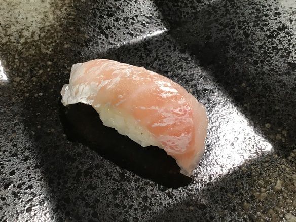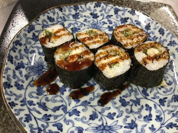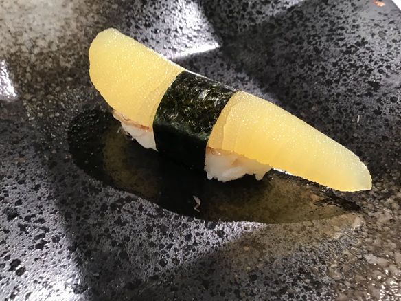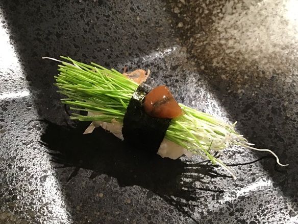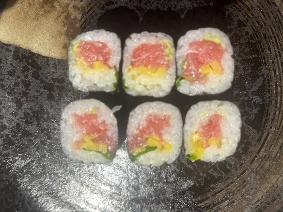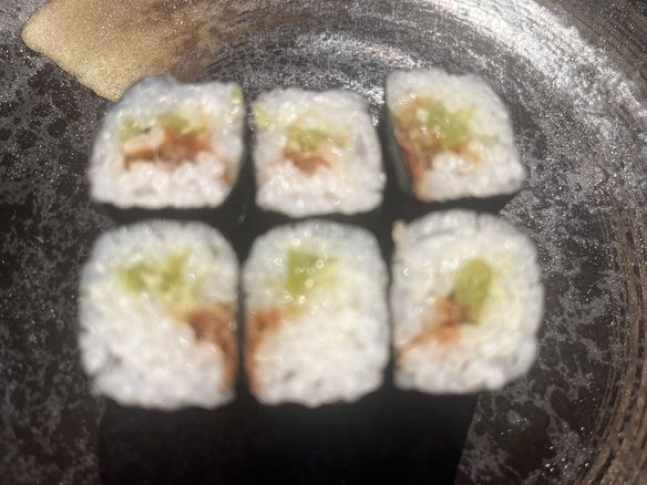 本わさびを刻み醤油で味付けしたとびきり辛味を強くしてあります。 その刻みわさびにカツオ節をまぶして巻きました