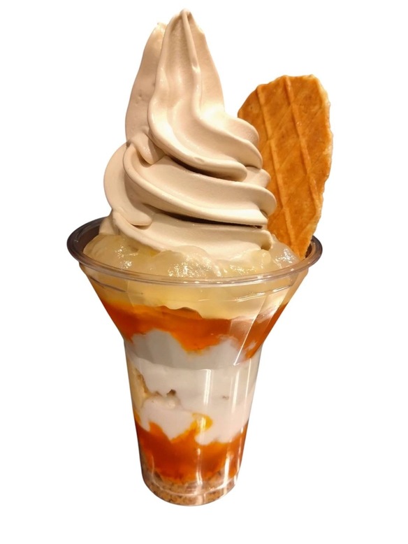 香ばしくローストしたナッツに、ほろ苦く濃厚なキャラメルソースを合わせた大人のパルフェ。 ソフトクリームのまろやかさと、ナッツのカリッとした食感、キャラメルのコクが重なり合う贅沢な一杯です。≪オプションのリキュールを加えれば、さらに艶やかに広がる至福の一杯≫