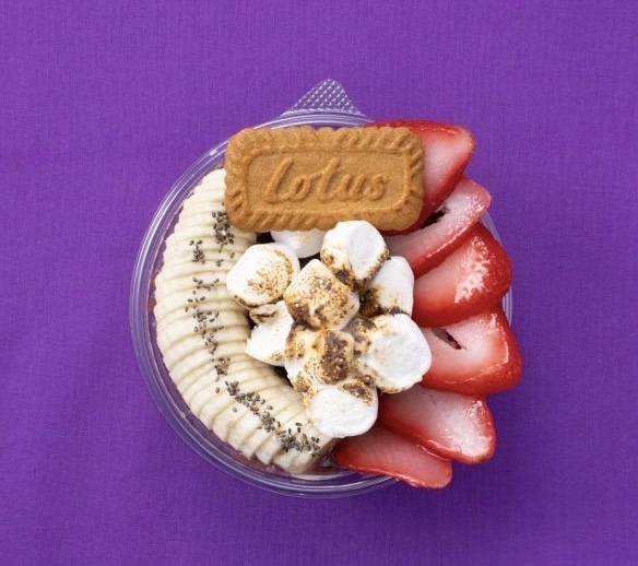 バナナ&チアシード、グラノーラ、ストロベリー、ミックスナッツ、ブルーベリー、LOTUS、ハチミツ