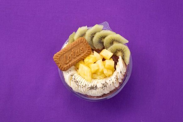バナナ&チアシード、グラノーラ、ストロベリー、キウイ、マンゴー、ブルーベリー、ハチミツ