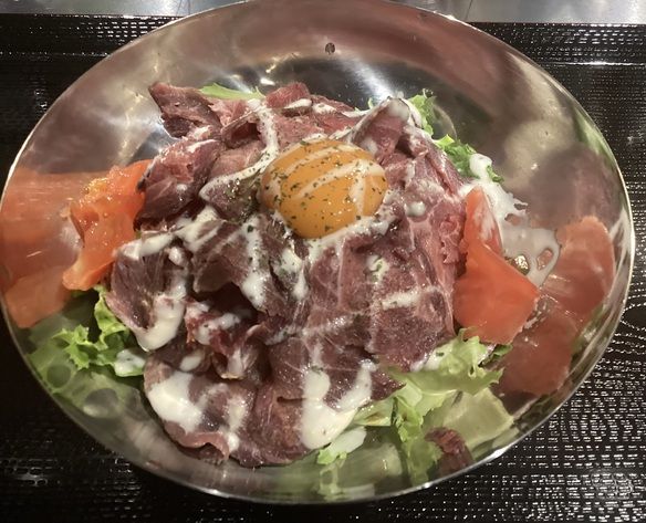 新鮮な牛モツを特製ダレで香ばしく炒め、旨みとコクを引き立てました。ぷるっとした食感と深い味わいが後を引き、お酒がすすむ一品です。