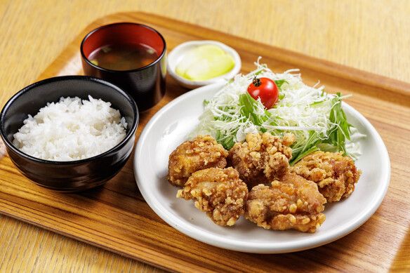から揚げは手仕込みの為大きさにより4個~5個入りとなります。 ※テイクアウトはみそ汁はつきません。