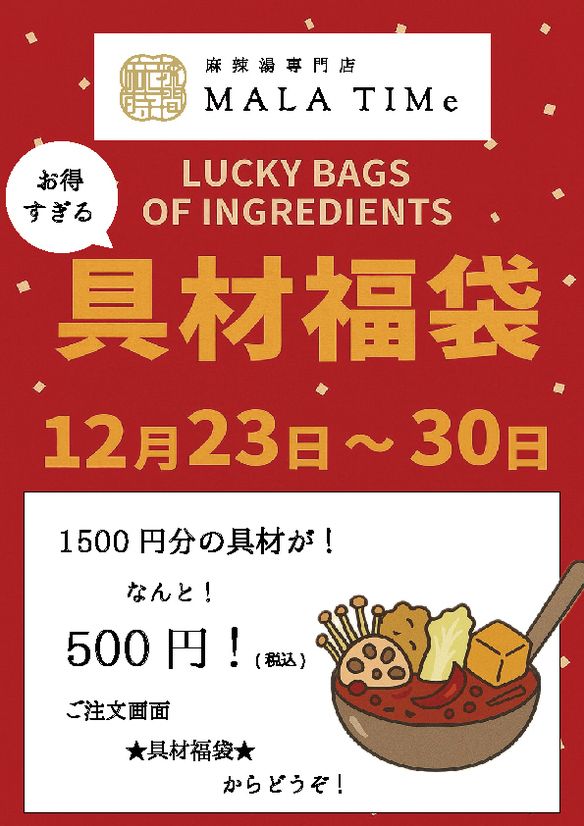 麻辣湯の「具材福袋 ¥500」2種類を販売🎁