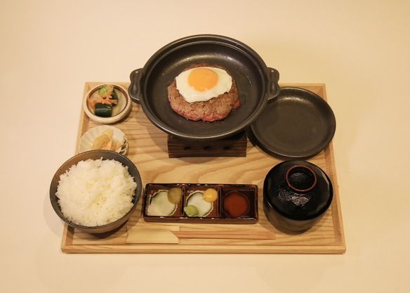 研究に研究を重ねた黄金比による極上ハンバーグ丼になります。
