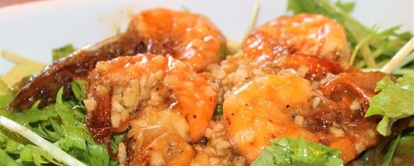 ハワイのガーリックシュリンプを当店独自にアレンジ ソフトシェルシュリンプなので殻ごと食べれて栄養価もバッチリ!