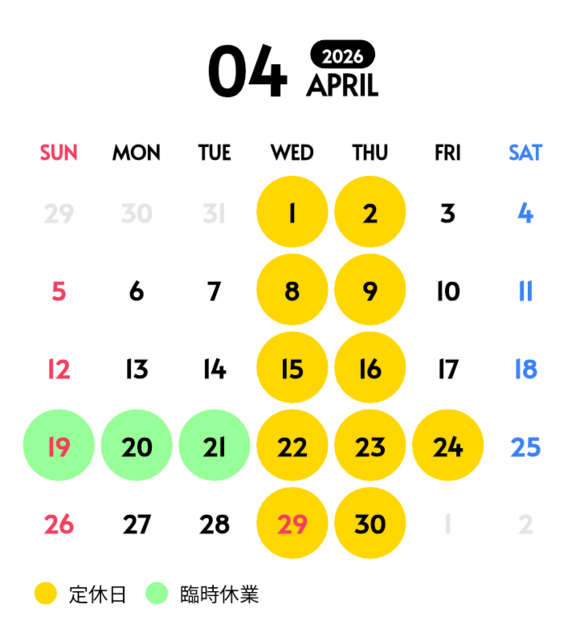 4/19.20.21 イベントの為、お休み
