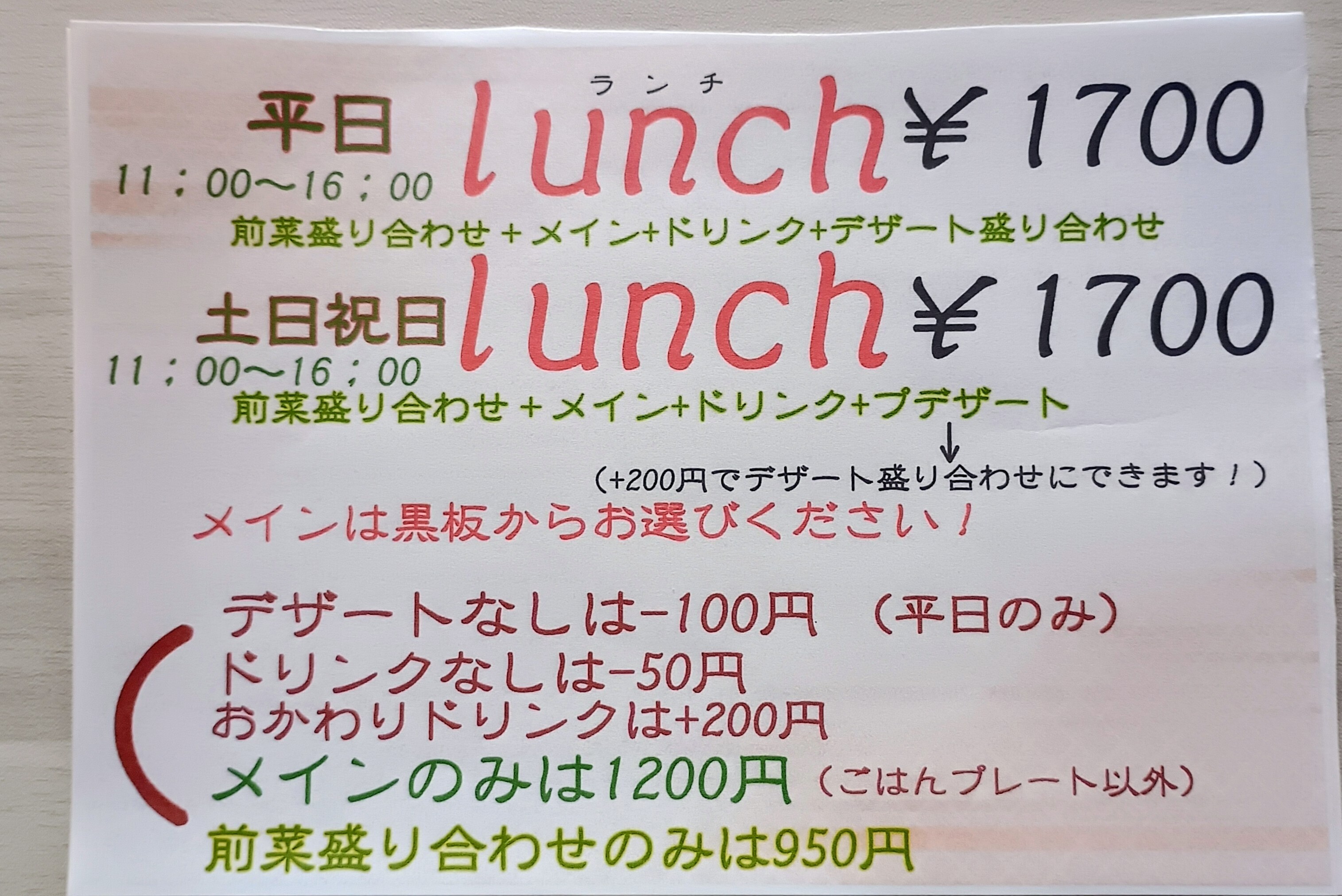 ランチメニュー価格改定のご案内