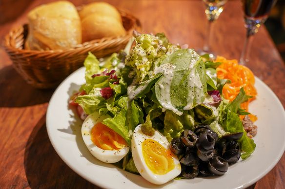 オリーブ、アンチョビ、トマト、卵のサラダ!