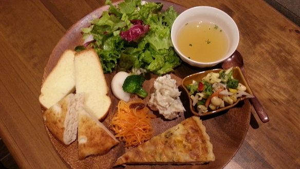 平日ランチタイム限定。 ドリンク付 本日のキッシュ、デリにサラダ、パン、スープ、人参のラペを1プレートで。
