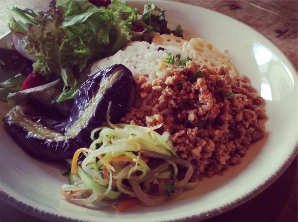 平日ランチ数量限定。 数種類のお惣菜と雑穀米のご飯プレート。ドリンク付。 ご飯ものは日替りになります。