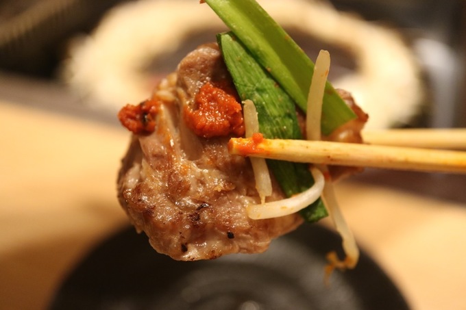 1頭から70グラムほどしかとれないという希少な「ラムタン」。焼く前にレモンをかけ、タレに付けずそのままいただくのがおすすめの食べ方。レモンを先にかけることによりお肉が柔らかくジューシーになります。