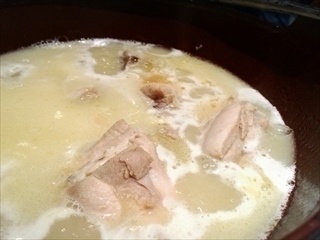 30kgの鶏ガラ、叩き砕きながら6時間水だけで作り上げた自慢の鶏ガラスープは、鶏の旨味が