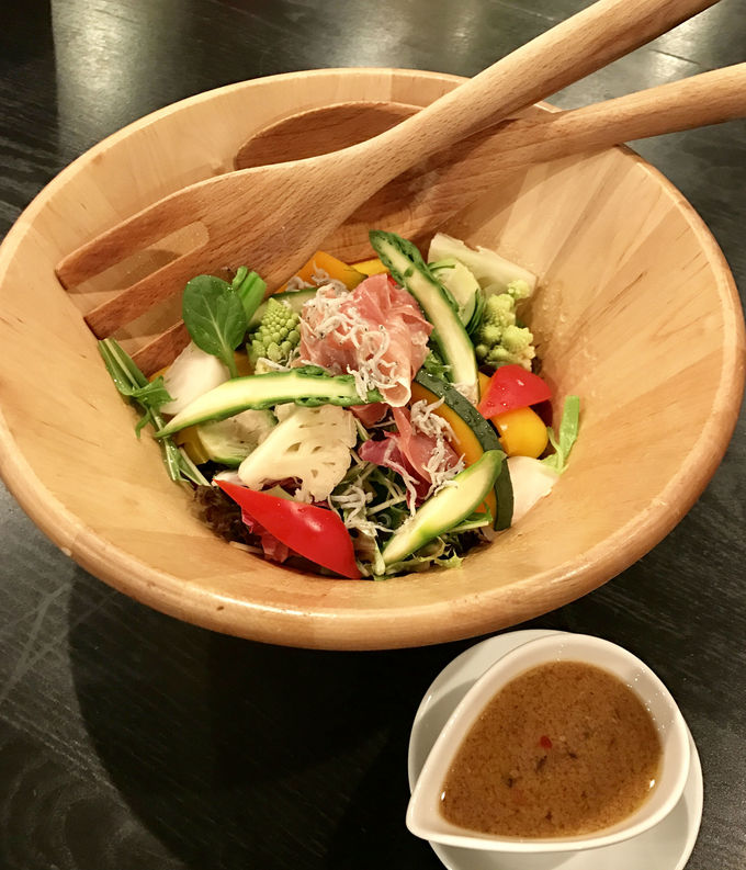 『THETA MU』では地元の野菜をふんだんに取り入れています。こちらのサラダも所沢産の野菜がゴロゴロと入っているお店自慢のメニューです。