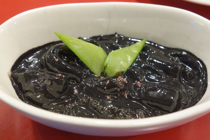 「イカスミの塩辛」280円は、イカスミのコクと磯の香り、イカのコリコリ感が癖になる一品。